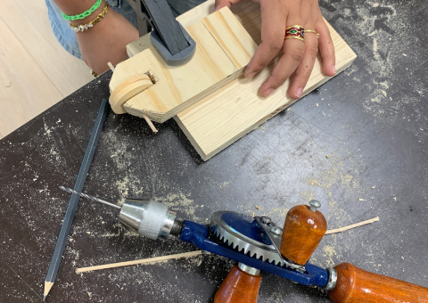 Ontwerp en bouw een houten windmolen; versier met eigen patronen.