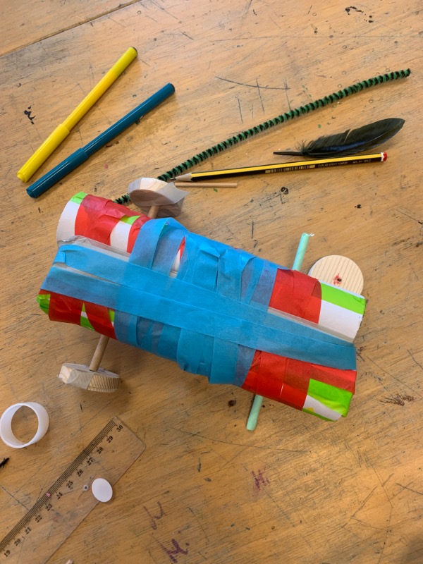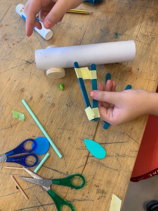 Maak een zelfgebouwde auto van karton en hout. Kinderen ontdekken